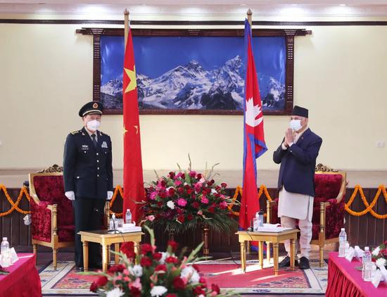 班达里说,尼中友好源远流长。尼方祝贺中国在习主席领导下取得抗疫成功,对中国坚定支持尼经济发展和社会稳定深表感谢。尼方积极参与中方“一带一路”倡议,愿进一步密切各领域关系,不断深化两军友谊与合作。