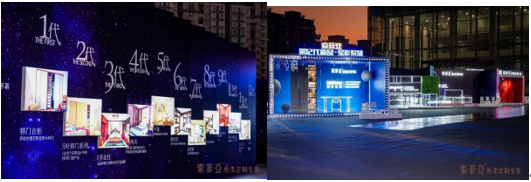 而星影系列的“璀璨”在当晚也得到了极致的演绎,从华丽炫酷的星光大道开始,步步引领着来宾探索索菲亚的不凡之路。满天星斗、手可摘星的的光影艺术空间,时尚与历史相得益彰的产品发展长廊、科技与艺术水乳交融的产品展示区....360度的光影覆盖,环绕式的星空场景,沉浸式的视觉效果,艺术、光影、科技完美融合,给到场嘉宾呈现了一场无与伦比的视觉体验台。