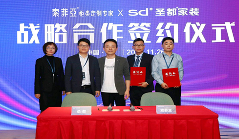 2021年,索菲亚已经整装待发,其中“整装”的语意,不止是代表索菲亚已准备充分,还有另一层深意。当天在新品发布会举办前,索菲亚与家装巨头圣都家装达成战略合作,强强联手,进攻万亿元的整装蓝海市场。