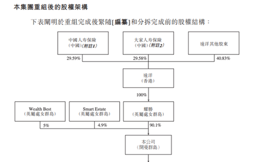 从目前远洋服务的初步招股文件显示,远洋集团持有远洋服务90.1%股份,而远洋集团由中国人寿保险、大家人寿保险和其他股东分别持股29.59%、29.58%及40.83%。也就是说,远洋其他股东、中国人寿保险、大家人寿保险分别为远洋服务间接三大股东。
