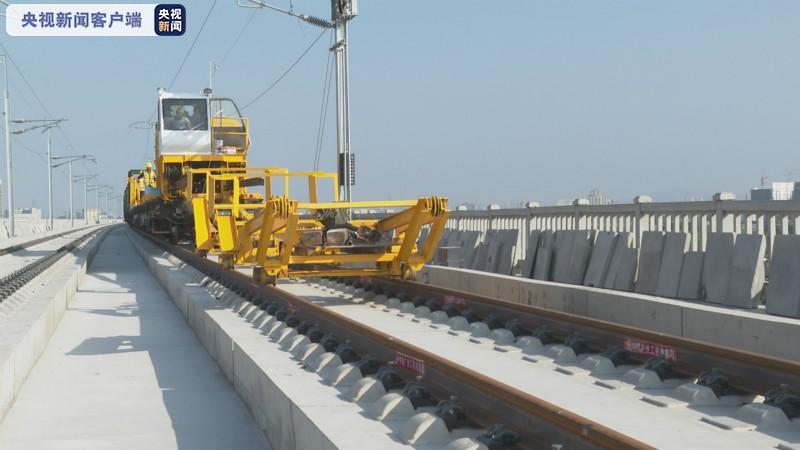 中铁广州工程局佛莞城际铁路四标项目负责人石崇介绍说:“铺轨效率基本上按照每天两公里的速度,预计全线要用四十天,争取在一个月内完成。”