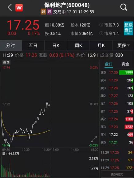 板块内,房地产龙头万科A、保利地产先后下跌2%左右。但临近尾盘,两大龙头双双飘红,带动指数从深坑中爬出。