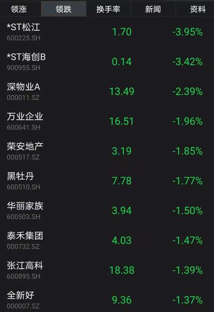 *ST松江、*ST海创B等跌幅近4%左右。当天上午开盘下跌房地产企业一度超百家。