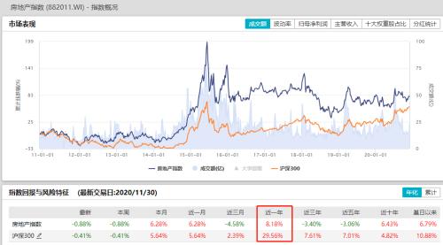 值得注意的是,今年以来,房地产板块始终表现欠佳。数据显示,近一年来,房地产指数涨幅仅为8%左右,而同期沪深300指数涨幅近30%,大幅跑输市场。