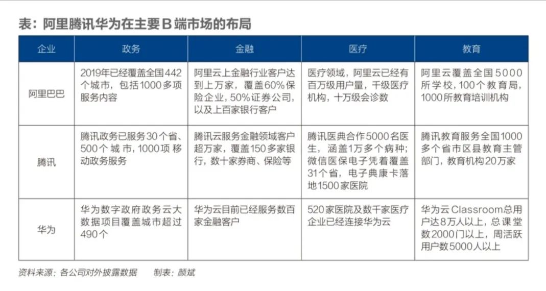 阿里腾讯华为在主要B端市场的布局资料来源:各公司对外披露数据