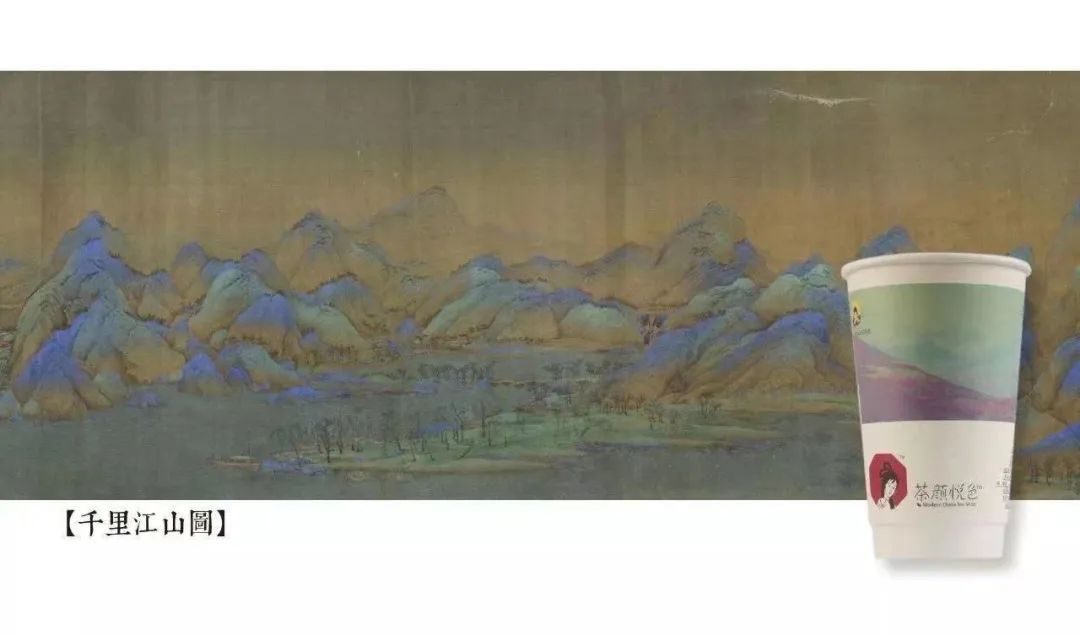 茶颜悦色用《千里江山图》进行创意设计的纸杯 " 图片来源:茶颜悦色公众号