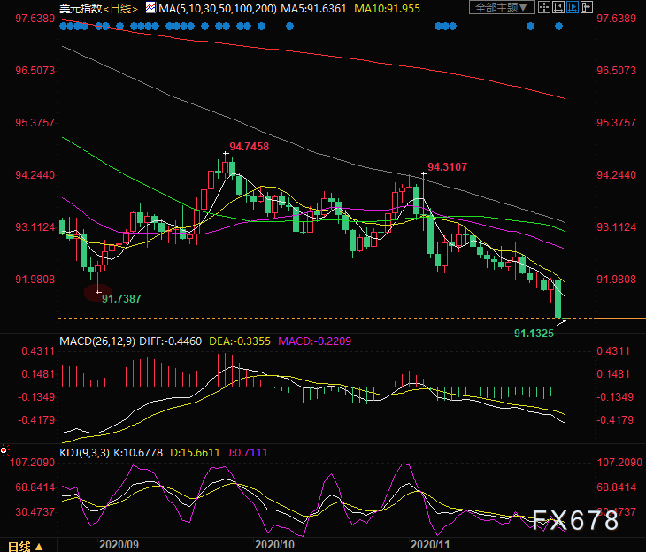 美元周三震荡持稳,目前交投于91.15附近,周二(12月1日)大跌0.9%,美国会参众两院分别提出了三个有关经济刺激的提案,导致美元被市场看空。另外,市场预计美联储在12月中旬将采取行动,也利空美元。