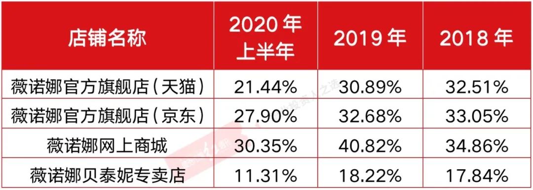 据招股书显示,其线下店铺购买频次在2次及以上的客户数量占比超过五成,但其线上店铺如薇诺娜官方旗舰店(天猫)、薇诺娜官方旗舰店(京东)、薇诺娜贝泰妮专卖店的顾客购买频次均以1次为主,以2020年上半年为例,前述线上店铺购买1次的客户占比分别为78.56%、72.10%、88.69%,这表明其线上销售渠道的客户黏性较低,留不住回头客。