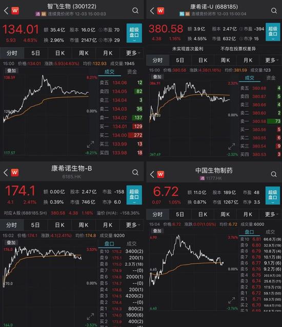 受此消息影响,智飞生物股价盘中一度涨逾8%,其他新冠疫苗股也纷纷跟涨。