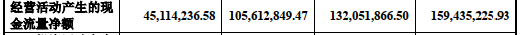上述同期,公司经营活动产生的现金流量净额分别为1.59亿元、1.32亿元、1.06亿元、4511.42万元。其中,销售商品、提供劳务收到的现金分别为6.20亿元、7.28亿元、7.01亿元、2.97亿元。