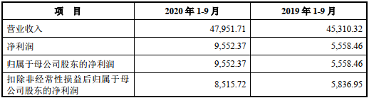2020年1-9月,亿田智能实现营业收入4.80亿元,较上年同期增长5.83%;归属于母公司股东的净利润为9552.37万元,较上年同期增长71.85%;扣除非经常性损益后归属于母公司所有者的净利润8515.72万元,较上年同期增长45.89%;经营活动产生的现金流量净额为1.35亿元,上年同期为5982.67万元。