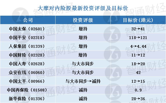 该行称,中资保险股首选中国太保(02601)(营运具质素、低基数及具股息支持)、中国平安(02318)(具良好业务、寿险业务转型、作科技投资)及中国财险(02328)(低估值、料有稳定增长率及高股息)。