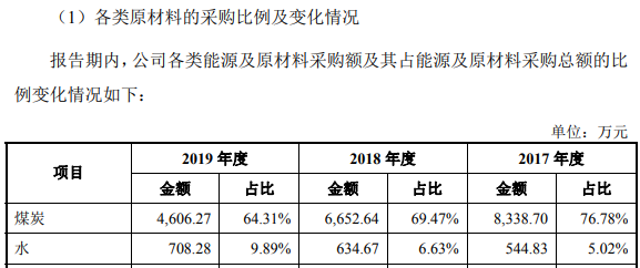 根据招股书披露,世茂能源在2017年到2019年的发电用气数量分别为19.41万吨、13.89万吨和12.44万吨,逐年减少;但与此同时,各年度的发现收入却分别为4409.53万元、3853.86万元和4352.43万元,在售电电价稳定的毕竟下,这就指向世茂能源的发电量并未出现明显减少,与发电用气数量变化趋势并不匹配。