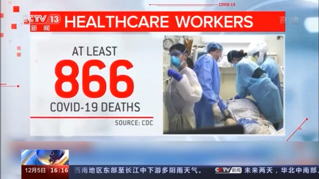 长时间的超负荷工作造成的身体疲劳,以及工作环境中的病毒传播,让许多美国医生、护士感染。根据美国疾控中心的数据,目前至少有866名医护人员死于新冠肺炎。