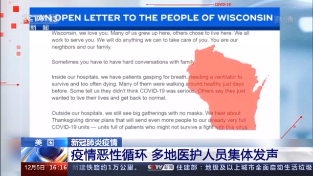 与此同时,威斯康星州和纽约州的医护人员也站出来发声。在威斯康星州,数千名医护人员写下一封公开信,请求公众“严肃对待疫情,采取行动阻止新冠病毒的传播”。
