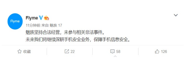 魅族表示,魅族坚持合法经营,未参与相关非法事件。未来我们将继续深耕手机安全业务,保障手机信息安全。