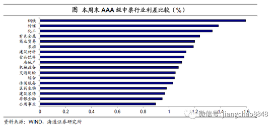 高等级债中,钢铁、传媒是利差最高的两个行业。AAA级钢铁行业中票平均利差为159BP,AAA级传媒行业中票平均利差为138BP。其次是化工、有色金属、商业贸易和采掘行业,其利差均在120BP及以上。公用事业是平均利差最低的行业,目前为90BP。