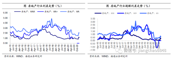 地产行业低等级和高等级债超额利差收窄。具体来看,截至12月4日,AAA级地产行业超额信用利差为33BP,较上周末下行8BP;AA级地产行业超额信用利差为61BP,较上周末下行10BP。