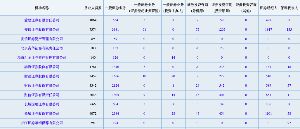 券商保荐代表人数量出现明显断层,除上述龙头公司外,仅安信证券、东方投行、东兴证券、光大证券、申万宏源承销保荐、兴业证券、招商证券等几家投行保荐代表人数量超过100人,而中山证券、中邮证券、东亚前海等保代数量不足10人。