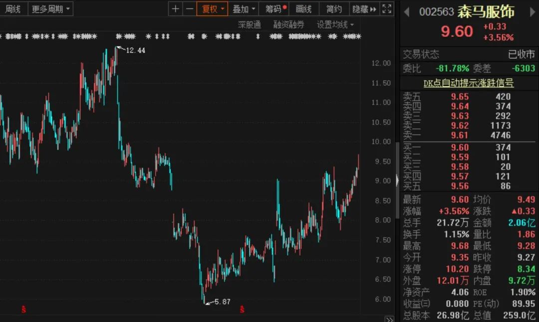 12月3日盘后,森马服饰组织了投资者交流电话会议,上投摩根、摩根大通、高毅资本、交银施罗德基金等在内的95家机构、合计128名机构代表参会。森马服饰一周上涨近6%,现价9.6元/股。