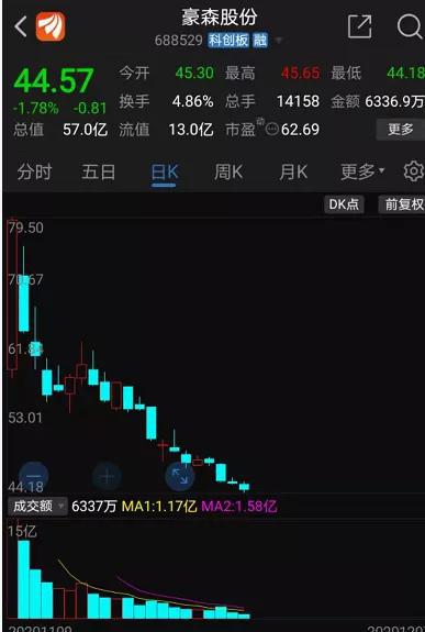 豪森股份和会通股份是科创板公司,最新价距上市以来最高点回调幅度最大,均超40%。豪森股份公司上市首日涨291.58%,换手率高达80.52%,公司股价自次日开始开启下跌模式,今日最新价创上市以来新低,距股价高点回调近44%。豪森股份是一家智能生产线和智能装备集成供应商,主要生产制造应用于汽车领域的智能生产线,此前豪森股份在互动平台上表示,公司对特斯拉提供的主要产品为动力锂电池模组/PACK智能装配线。
