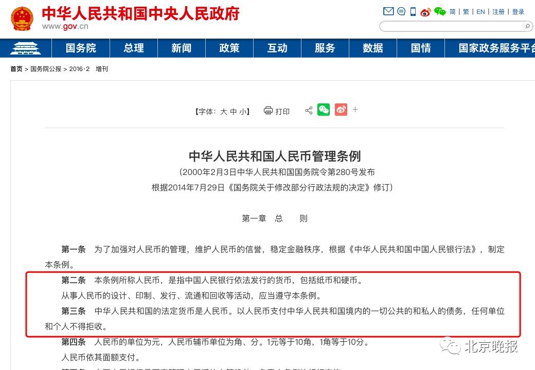 《中华人民共和国中国人民银行法》《中华人民共和国消费者权益保护法》《中华人民共和国人民币管理条例》都明确规定,以人民币支付中华人民共和国境内的一切公共债务和私人债务,任何单位和个人不得拒收。所以,无论是拒收硬币还是拒收纸币,都是涉嫌违反相关条例的。