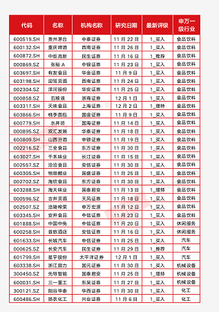 进一步梳理显示,近一个月以来,食品饮料(白酒为主)、化工、机械设备与汽车等行业均有30家以上公司获得机构给予推荐买入评级,这似乎印证了机构偏向景气复苏的逻辑。以食品饮料为例,行业内共有39家公司获得机构推荐,并有多家公司被多家机构扎堆推荐的现象。如国泰君安、中泰证券、天风证券等6家机构扎堆推荐贵州茅台;天风证券、华泰证券等12家机构联手推荐古井贡酒;安信证券、招商证券等7家机构联手推荐涪陵榨菜等。