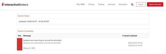 盈透证券公开致歉称:“我们认识到这给我们的客户造成了混乱,并表示歉意。”其官网在“当前系统状态”页面称,7日美东时间上午10点40分时,系统正在恢复正常功能。但美股开盘两小时,仍有来自美国佛罗里达州、亚利桑那州、纽约、加拿大多伦多、爱尔兰和葡萄牙等全球主要国家和地区的用户报错,实时交易界面和数据流无法正常运行。