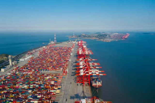 作为上海港重要组成部分的国际枢纽港,洋山港的进出集装箱量也在持续增长。2019年,洋山港集装箱吞吐量达到1980.8万标箱,占上海港集装箱吞吐量(4330.3万标箱)的比重达45.7%。