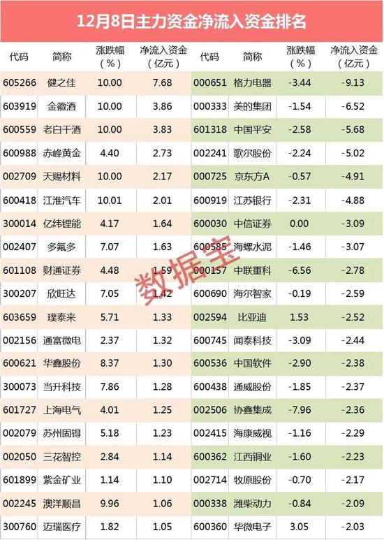 两市只有22股流入资金超亿元。次新股健之佳流入金额居首,净流入7.68亿元,今日股价首次开板后仍收于涨停。以最新价计算,每一签新股最新盈利达到9.6万元,是近期少有的大肉签。健之佳主要从事药品、保健食品、个人护理品、家庭健康用品、便利食品、日用消耗品等健康产品的连锁零售业务,并提供相关专业服务。