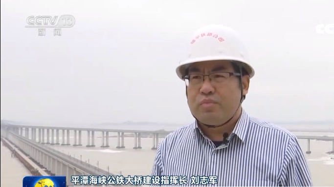 平潭海峡公铁大桥指挥长 刘志军:我们首次研发应用海上架梁新技术和目前国内吊高最高的起重船,自主研发环境综合监测系统等。从新材料、新结构、新方法、新工艺等方面已申报了12项专利。