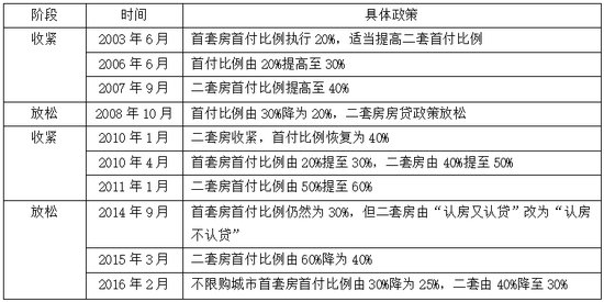 我国房地产金融审慎管理实践较为丰富。调整首付比就是调整贷款价值比(LTV),2016年之前,全国实行统一的调整,主要分为四个阶段。第一阶段:收紧。为了抑制需求与房价,2003年6月,央行发文提高二套首付比例。2006年,把个人房贷首付比(LTV)由20%升为30%。第二阶段:放松。2008年由于美国次贷危机冲击,为了稳定宏观经济,为扩大房地产需求和稳定房价,首套房首付比由30%降为20%,二套房的房贷政策放松。第三阶段:收紧。为了促进房地产市场健康发展,2010年首套房首付比由20%提高为30%,二套房首付比例由40%提升至50%,2011年二套房首付比例再次提升至60%。第四阶段:放松。出于去库存需要,2014年9月实行了宽松的“930”房贷新政,二套房认定标准放松,2015年二套房首付比例由60%降为40%,2016年降低不限购城市首付比例。2016年之后,我国房地产金融审慎管理开始因城施策,各城市自主调节,收紧房地产政策。