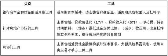 宏观审慎政策工具,从功能角度分常用宏观审慎政策工具有几类:1、增加银行资本金和拨备的逆周期工具,包括逆周期资本缓冲、动态拨备和准备金、逆周期风险权重以及杠杆率。2、针对特定部门的逆周期工具,如针对房地产市场的工具,主要包括:贷款价值比(LTV)、贷款收入比(DTI)、印花税、持有时间限制、(提高)最低现金支付比例、(减少)偿还期、改变抵押贷款保险要求、银行房地产贷款数量限制。3、跨部门工具。