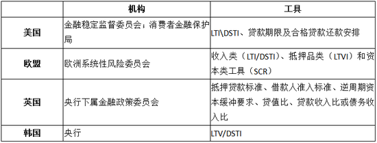 从主要国家实践来看,这些政策工具在稳定房价、调控信贷规模等方面都取得了一定的效果。金融危机之后,美国由金融稳定监督委员会(FSOC)负责宏观审慎管理,综合运用LTI\DSTI、贷款期限及合格贷款还款安排对房地产抵押贷款进行监管。欧盟由欧洲系统性风险委员会(ESRB)实施房地产金融宏观审慎管理,综合运用收入类、抵押品类和资本类工具调控房地产市场。英国由央行下属金融政策委员会负责宏观审慎监管,综合运用抵押贷款标准、借款人准入标准、逆周期资本缓冲要求、贷值比、贷款收入比或债务收入比等工具进行监管。韩国央行综合运用LTV/DSTI限制房价增长。
