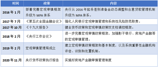 近几年我国政府高度重视宏观审慎政策。2017年,“十九大”报告中指出“健全货币政策和宏观审慎双支柱调控框架”。2019年,央行的宏观审慎管理局成立,牵头建立宏观审慎政策框架和基本制度,成立专门的机构,可见政府对宏观审慎政策非常重视。2020年5月,央行行长易纲发表文章指出按照“因城施策”原则,强化对房地产金融的逆周期宏观审慎管理。10月,央行副行长潘功胜在金融街论坛上表示,健全宏观审慎政策框架,重点健全房地产金融等宏观审慎体系。11月,央行货币政策执行报告指出“实施好房地产金融审慎管理制度”。