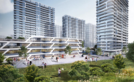 邀请世界著名的建筑设计大师扎哈哈迪德团队,以世界领先的理念,筑建颇具“未来感”的建筑立面,这是扎哈团队在杭州的首个作品,也将成为国际化杭州的新地标。以0系统为基础,结合城市路网、立体天街、社区慢行系统、智能物流等,建立5-10-30分钟的城市出行圈,打造高效集约的城市连接体系。以杭州钱塘新区的智造产业的资源优势,提供双创空间,设置“创业者服务中心”,开展“创客学院”,建设“双创信息平台”,顺应未来生活与就业融合的新趋势,构建”大众创新“的创业场景,同时配建创客公寓等解决创业者的生活后顾之忧,为区域引纳人才注入新鲜动力。以浙江省未来社区“三化九场景”的顶层设计为核心,结合自身实际,融入数字化智能管理体系,打造特色的九大场景。形成12班制幼儿园、分级诊疗体系、共享图书馆、全龄健身场馆等为代表,涵盖交通、商圈、教育、娱乐、医疗、休闲等配套于一体,满足社区居民需求的全维生活场景。