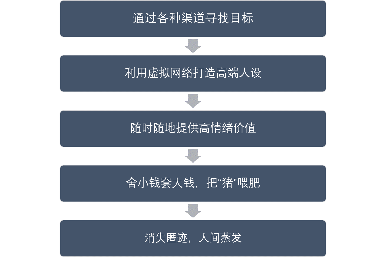 “杀猪盘”骗局是一种新型的网络诈骗手法,诈骗分子通过网络交友的形式诱导受害人参与各类理财、博彩游戏和外汇交易等类型虚假投资的诈骗方式。诈骗者把被骗的受害人叫做“猪”,按照一些既定的剧本去包装自己,装扮成高富帅,谈感情获取信任阶段称之为“养猪”,待聊到有一定情感基础后就开始引诱对方投资,最后的诈骗行为叫做“杀猪”。