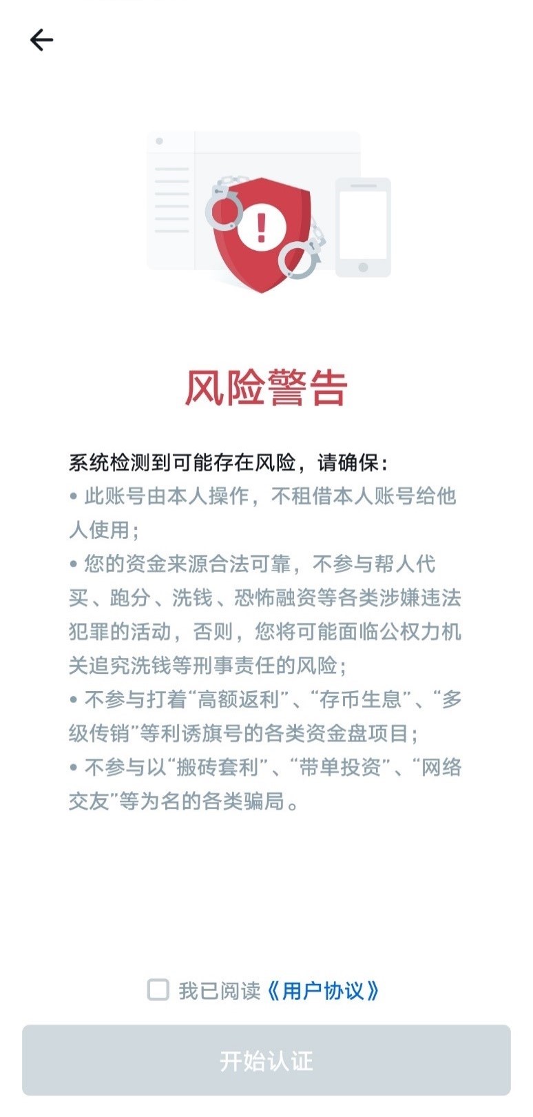 对于被系统风控识别出来的疑似受害人,据了解火币更是会全渠道(站内信+邮件+短信+push)进行风险提示。并要求用户仔细阅读相关的风险提示文档,在明确知悉诈骗套路后才可以解除相关限制。