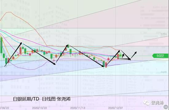 白银TD:银价上交易日周二开于4912元/千克,最高录得5124元/千克,最低录得4872元/千克触及10日均线支撑,收于5086元,幅度174元或3.54%。