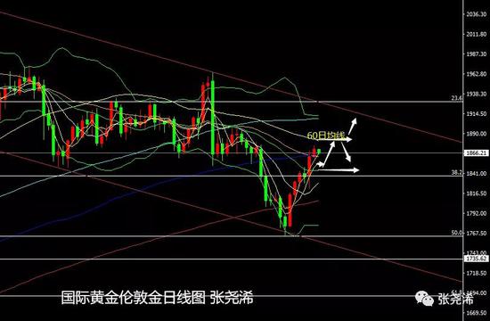 另外,目前1850美元已经突破站稳,则暗示金价将进一步上涨,并迈向MA10的位置1880/81美元附近,这是本周的高点预期位。而有效突破MA10,那就直接看反转!所以周线级别,继续以MA5为支撑,看涨目标至MA10。