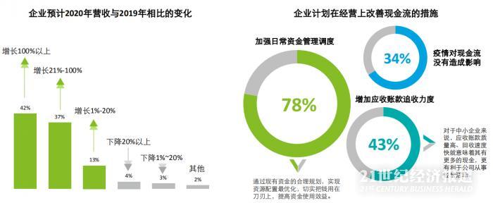 根据报告对高新科技企业的首席高管的调查,92%的企业预计2020年营收将会呈增长趋势,其中42%的企业预计增长为100%以上,34%的企业认为疫情对现金流没有造成显著影响。主要是由于样本企业多为轻资产企业,且企业规模较大。