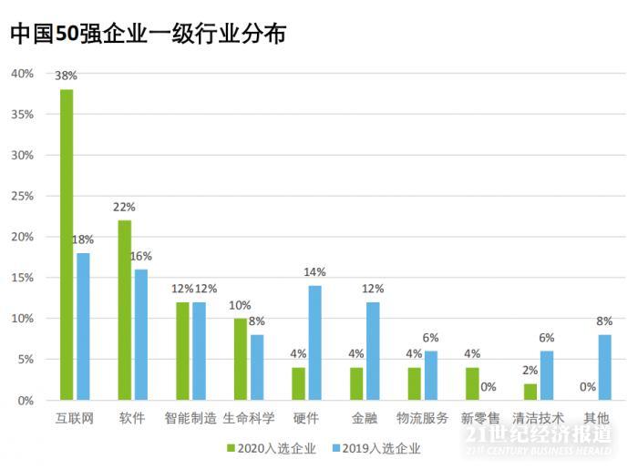 从行业分布来看,互联网占比38%,软件、智能制造、生命科学位居第二、三、四位,分别占比20%、12%、8%。
