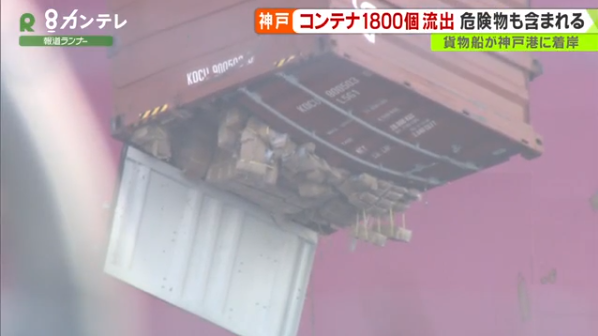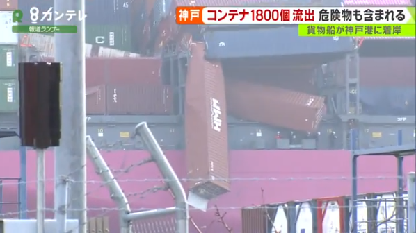 船上装载的部分集装箱(关西电视台)