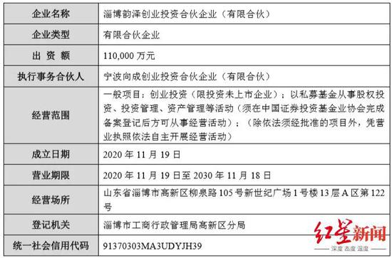 淄博韵泽于2020年11月19日成立,实际控制人为上海泰甫创业投资管理有限公司。