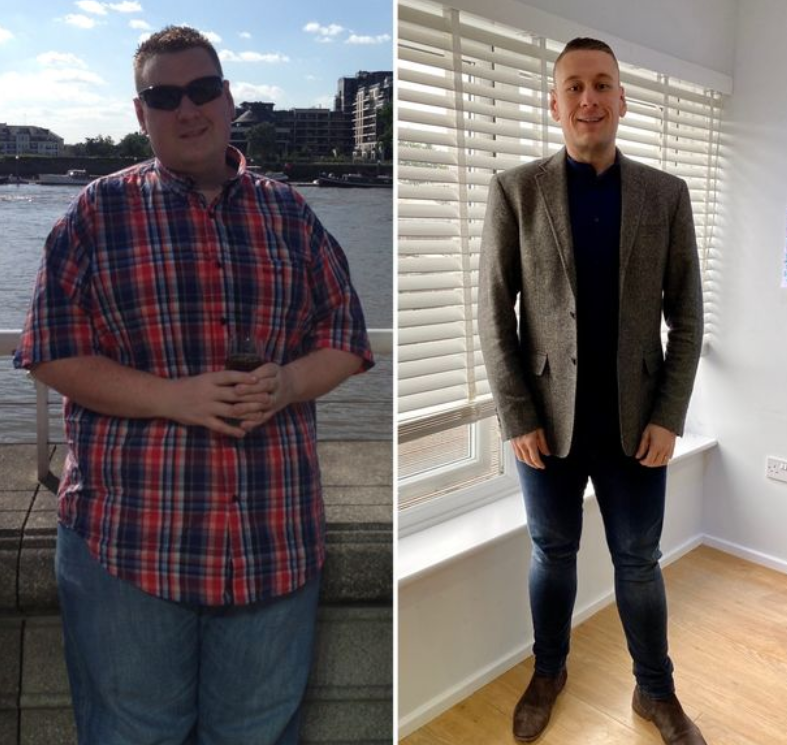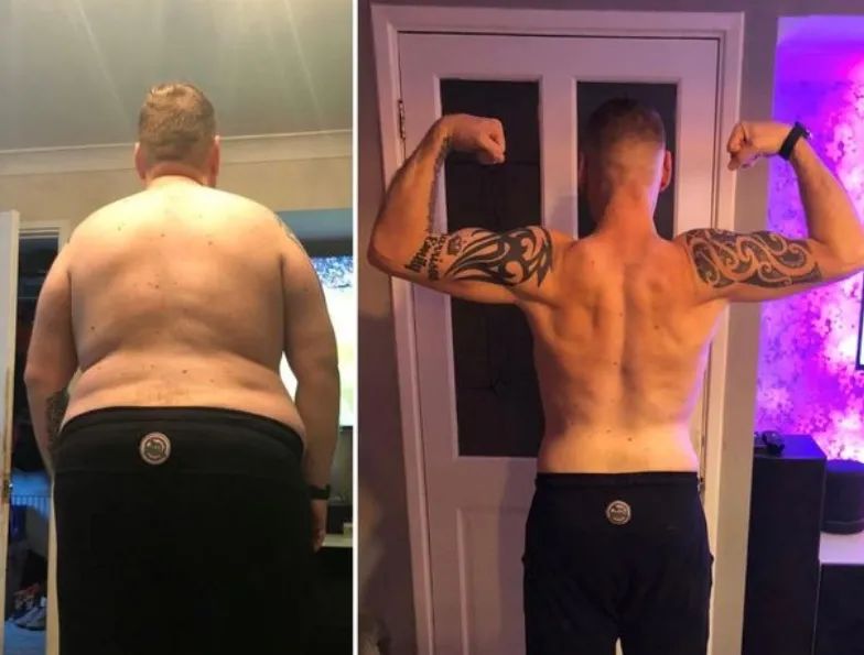 就这样,健身14个月后的他,用《镜报》的话说就是,“已经无法认出来了”: