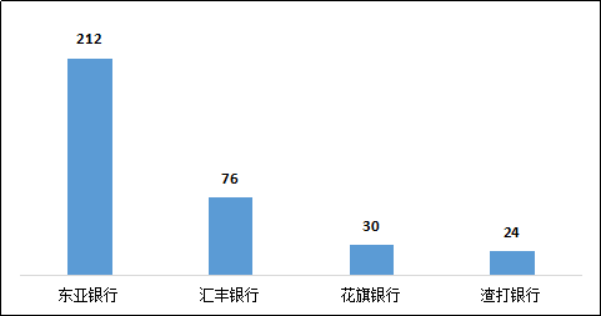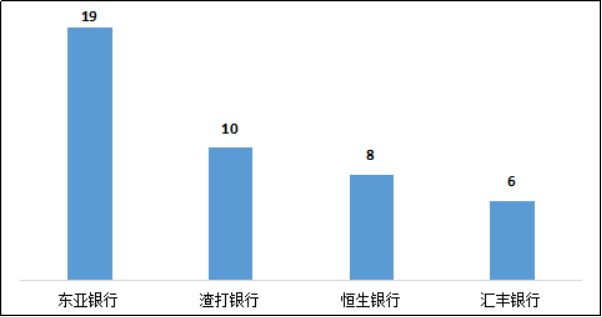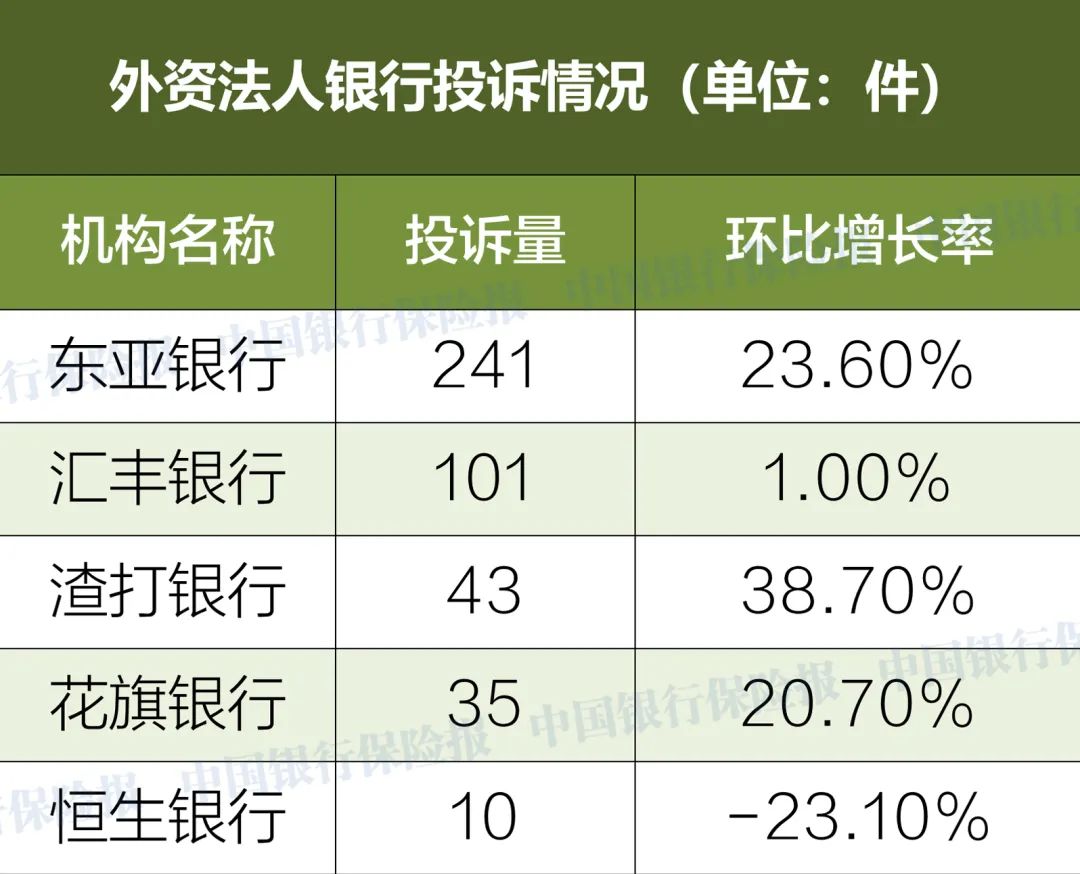 东亚银行、汇丰银行和渣打银行的投诉量位列外资法人银行前三名。