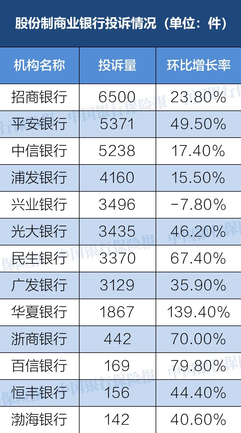 招商银行、中信银行、平安银行的信用卡业务投诉量位列股份制商业银行前三名。