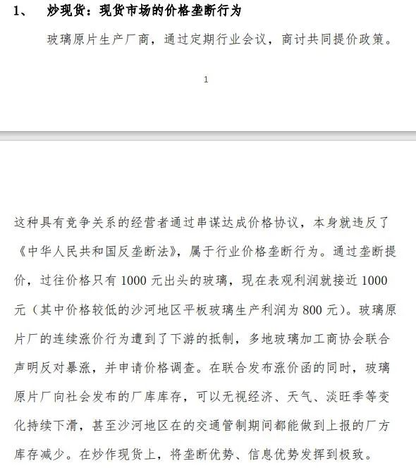 在近期玻璃期现货价格大涨的背景下,12月9日,一份网传的举报信直指玻璃现货市场价格垄断,期货市场存操作行为,引发市场关注。