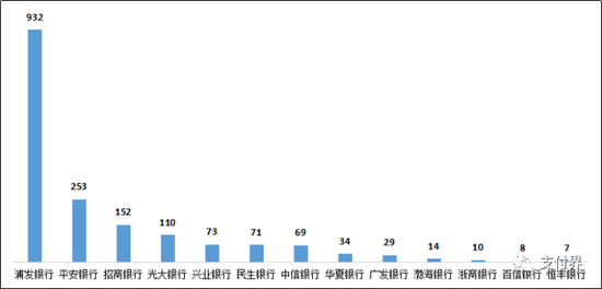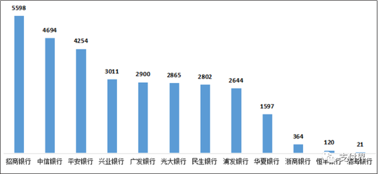 2.招商银行、中信银行、平安银行的信用卡业务投诉量位列股份制商业银行前三名。股份制商业银行信用卡业务投诉量的中位数为2833.5件。其中,招商银行5598件,环比增长24.4%,占招商银行投诉总量的86.1%;中信银行4694件,环比增长13.7%,占中信银行投诉总量的89.6%;平安银行4254件,环比增长58.6%,占平安银行投诉总量的79.2%;兴业银行3011件,环比减少12.7%,占兴业银行投诉总量的86.1%;广发银行2900件,环比增长38.6%,占广发银行投诉总量的92.7%;光大银行2865件,环比增长54.8%,占光大银行投诉总量的83.4%;民生银行2802件,环比增长76.3%,占民生银行投诉总量的83.1%;浦发银行2644件,环比减少3.1%,占浦发银行投诉总量的63.6%;华夏银行1597件,环比增长158.8%,占华夏银行投诉总量的85.5%;浙商银行364件,环比增长79.3%,占浙商银行投诉总量的82.4%;恒丰银行120件,环比增长110.5%,占恒丰银行投诉总量的76.9%;渤海银行21件,环比增长31.3%,占渤海银行投诉总量的14.8%。