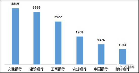 1.交通银行、建设银行、工商银行的信用卡业务投诉量位列国有大型商业银行前三名。国有大型商业银行信用卡业务投诉量的中位数为2412件。其中,交通银行3819件,环比增长43.5%,占交通银行投诉总量的86.2%;建设银行3565件,环比增长122.8%,占建设银行投诉总量的64.0%;工商银行2922件,环比增长92.1%,占工商银行投诉总量的49.9%;农业银行1902件,环比增长92.3%,占农业银行投诉总量的47.2%;中国银行1376件,环比增长104.5%,占中国银行投诉总量的31.5%;邮储银行1044件,环比增长76.4%,占邮储银行投诉总量的34.5%。